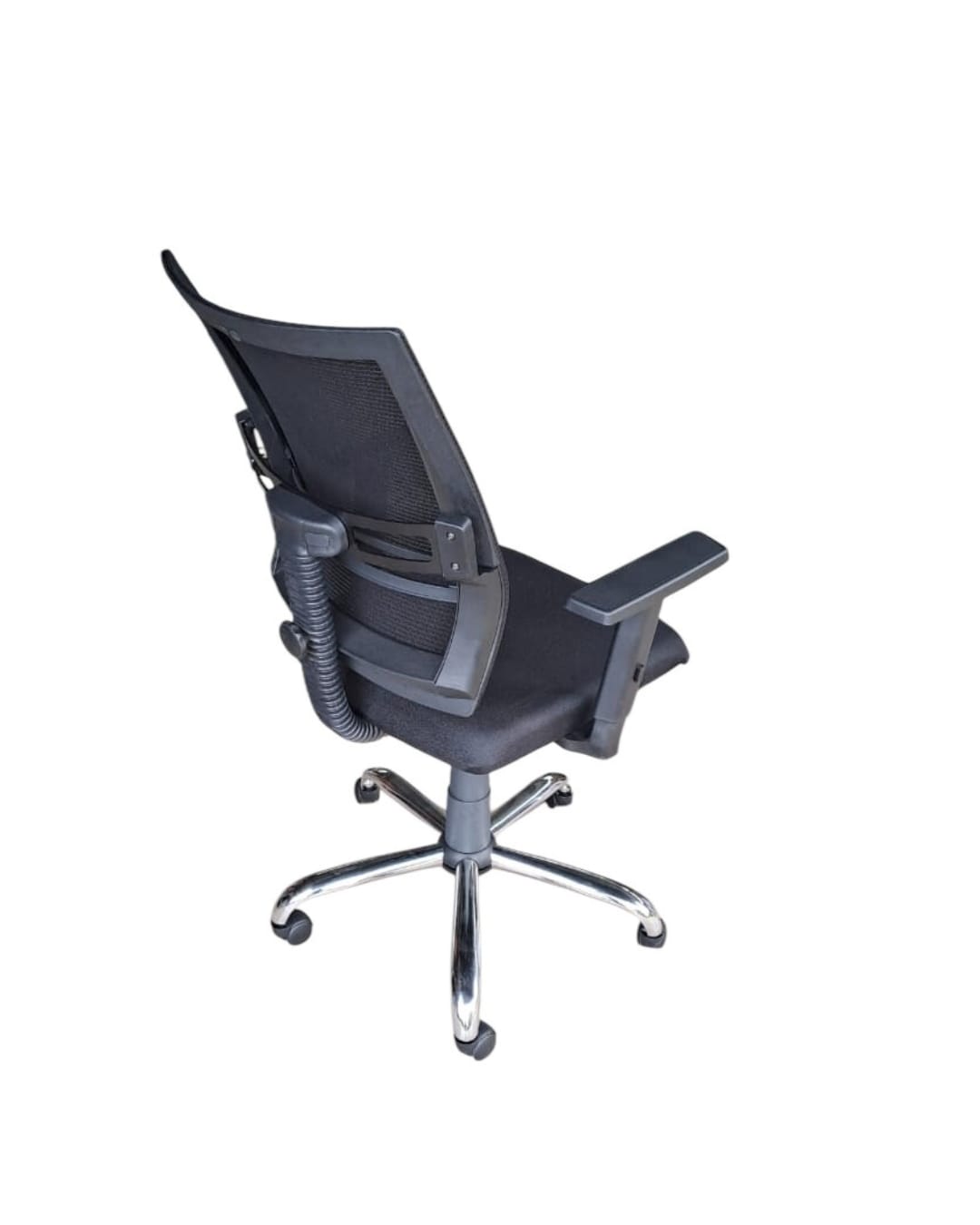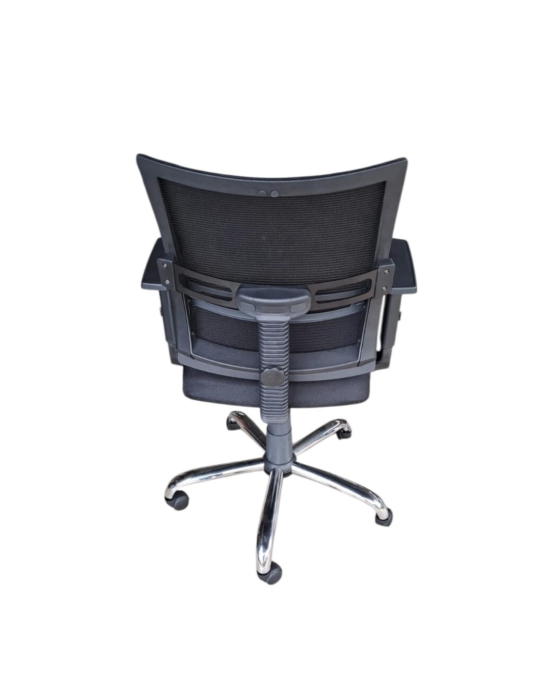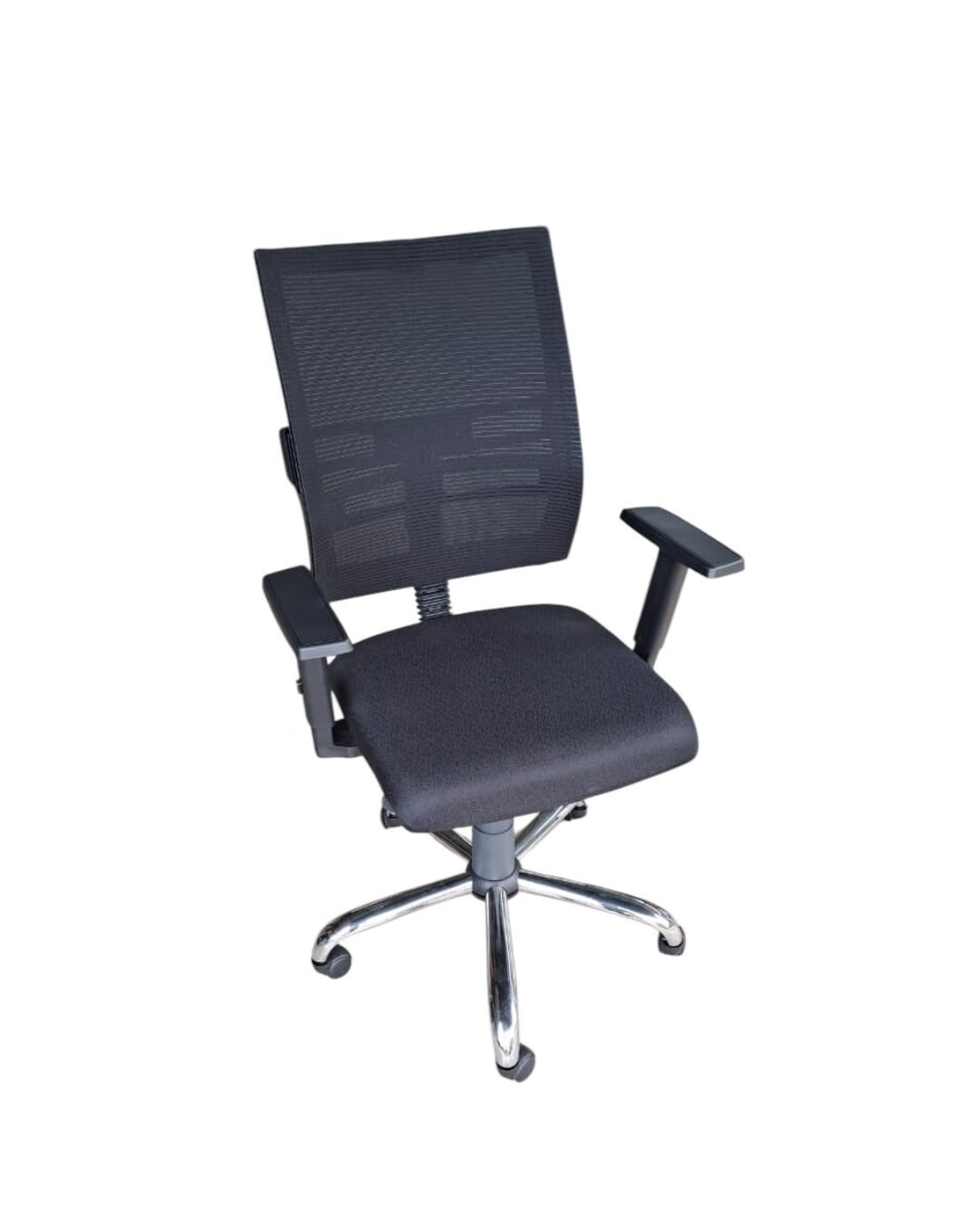 -ENCOSTO LOMBAR REGULÁVEL -BACKSYSTEM -BRAÇO TERMO -TELA MESH PRETA -BASE CROMADA -DIMENSÃO ASSENTO PF 52cm + L 50cm PRODUÇÃO NACIONAL