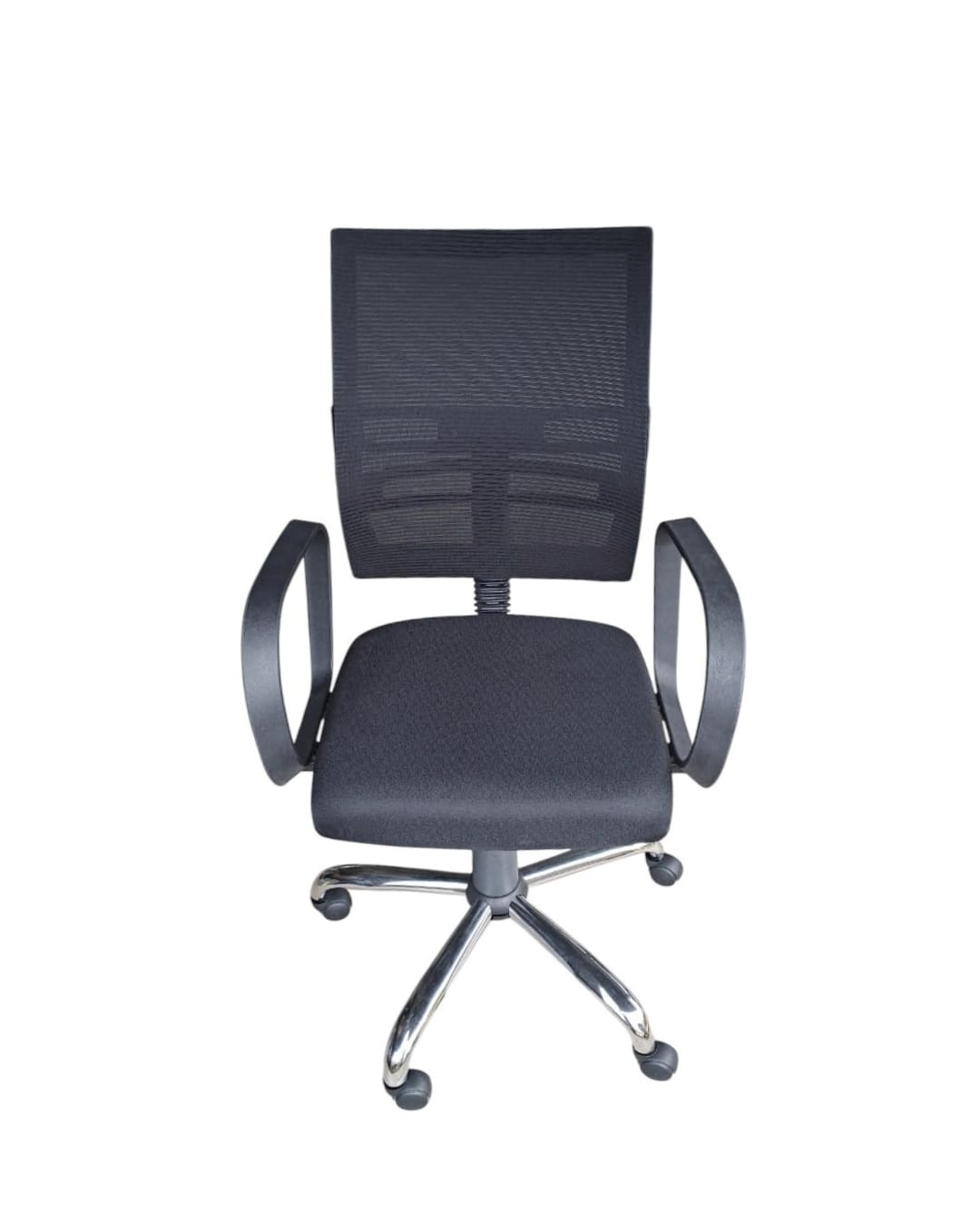 -ENCOSTO LOMBAR REGULÁVEL -BACKSYSTEM -BRAÇO TERMO -TELA MESH PRETA -BASE CROMADA -DIMENSÃO ASSENTO PF 52cm + L 50cm PRODUÇÃO NACIONAL