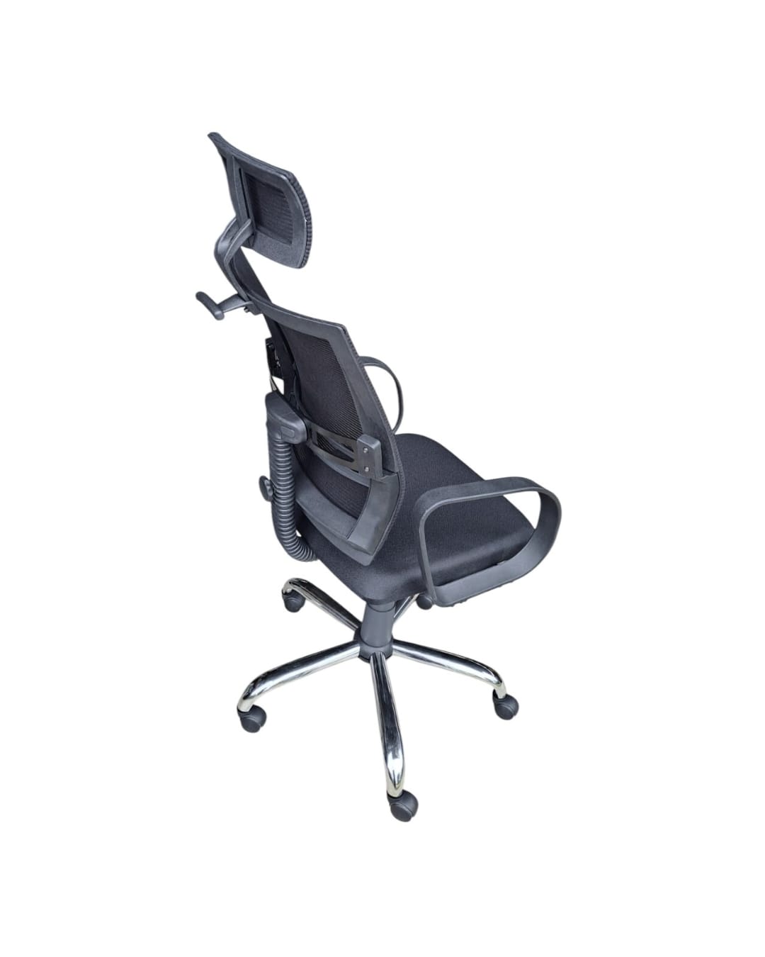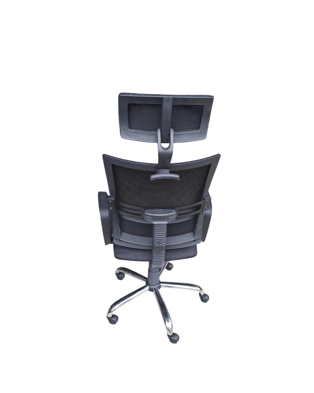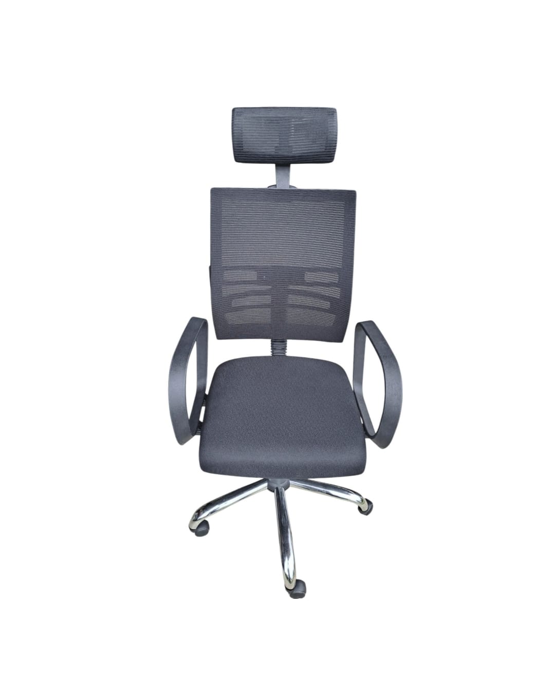 -ENCOSTO LOMBAR REGULÁVEL -TELA MESH PRETA -BACKSYSTEM -BRAÇO PRESIDENTE (METAL) -BASE CROMADA -DIMENSÃO ASSENTO PF52cm + PL50cm -PRODUÇÃO NACIONAL