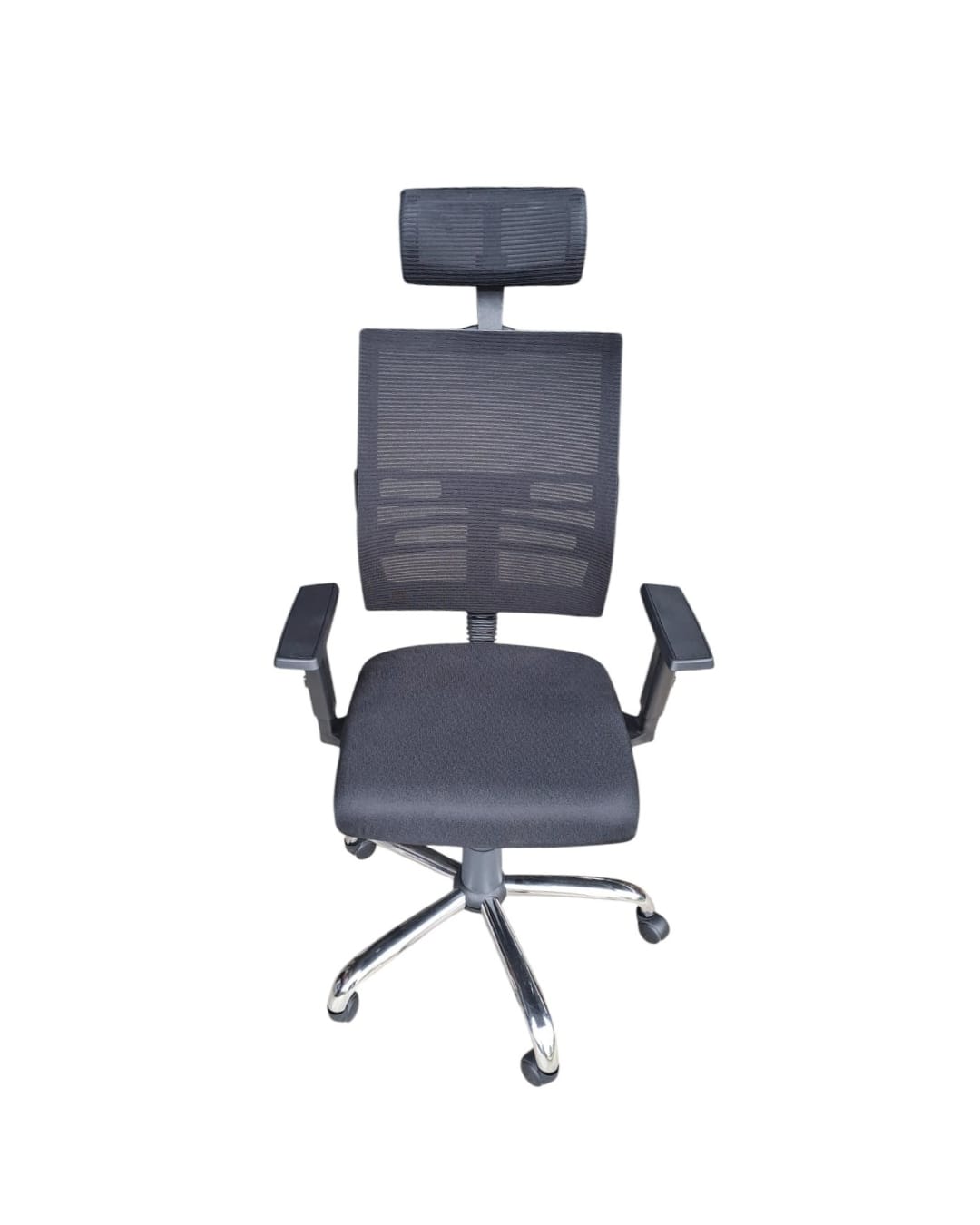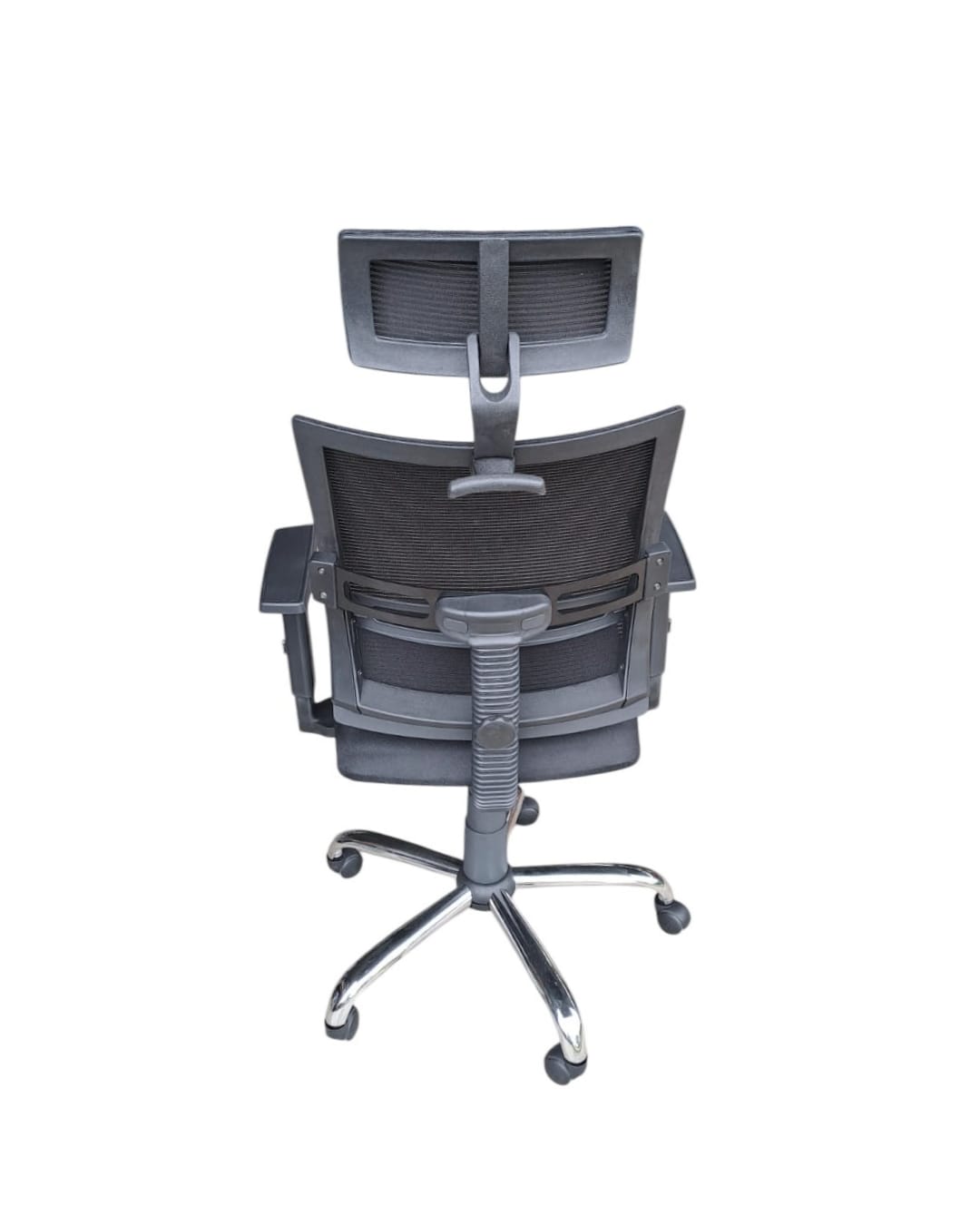 -ENCOSTO LOMBAR REGULÁVEL -BACKSYSTEM -BRAÇO TERMO -TELA MESH PRETA -BASE CROMADA -DIMENSÃO ASSENTO PF 52cm + L 50cm PRODUÇÃO NACIONAL